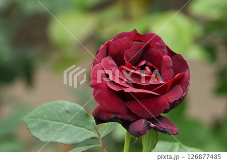 10月に咲いた美しく赤いバラ「グルスアンバイエルン」