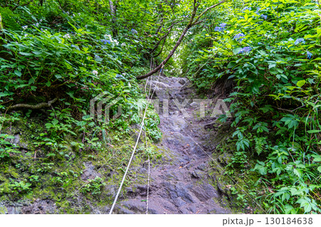 【日本百名山】大山ユートピアコース ヤマアジサイの花咲く鎖場1 鳥取県西伯郡大山町