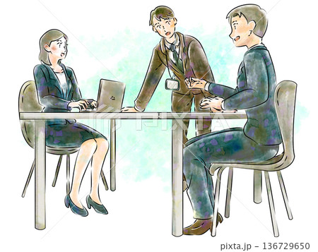 水彩風 男女混合の会議イラスト