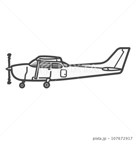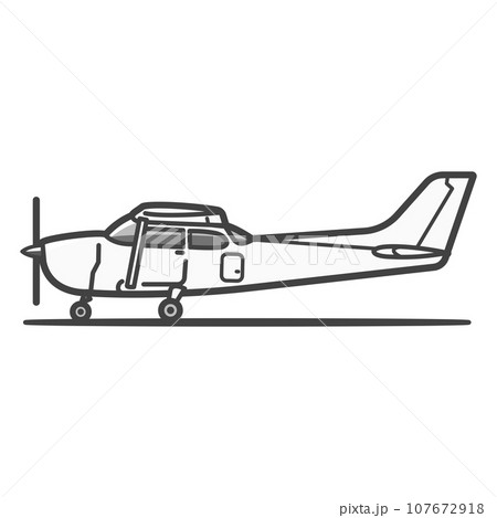 横から・着陸状態のプロペラ機・ハイウイングの小型飛行機・セスナ パイロット訓練や遊覧飛行など