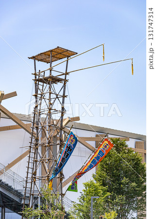 IGアリーナ大相撲太鼓櫓が立つ風景