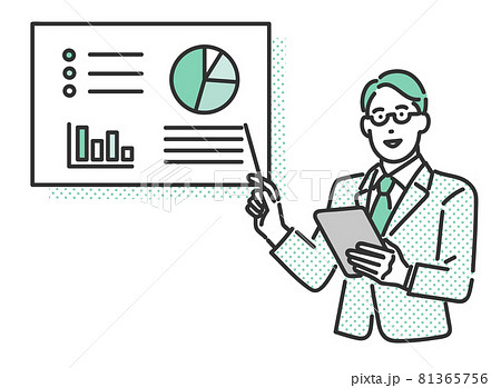 オンラインでコンサルタントの説明を受ける男性のイメージイラスト素材