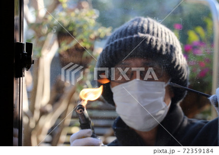 バーナーを使った、焼き破りによる空き巣のイメージ(室内から)