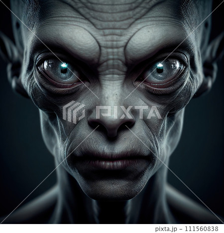 portrait of a gray alien, fantasy illustration