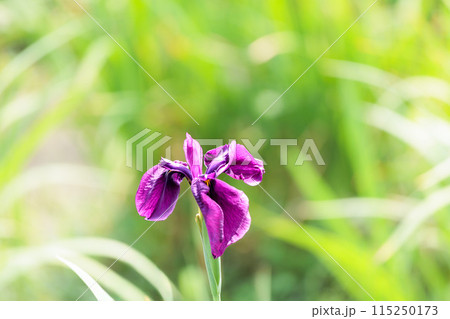 ノハナショウブ 野に咲く紫色の花 山野草 緑の自然背景