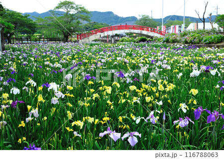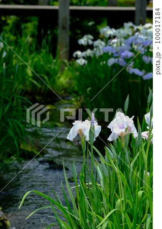 菖蒲の花が咲き乱れる庭園 西山の里 桃源
