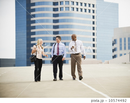 Co-workers walking in parking lot