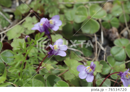春の道端に咲くツタバウンランの薄紫色の花