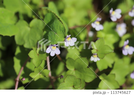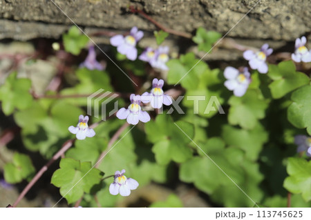春の道端に咲く薄紫色のツタバウンランの小さな花