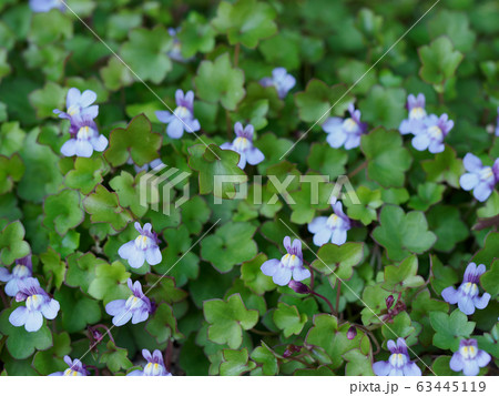 春の庭に咲く薄紫色のツタバウンランの花