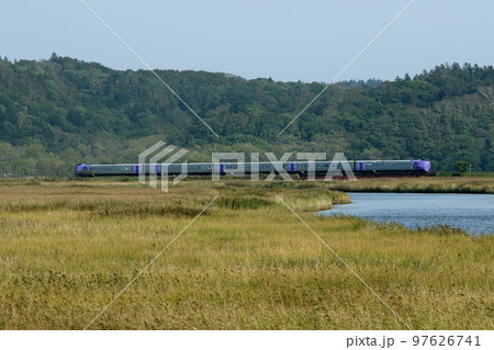 釧網本線の原生花園付近を走るHOKKAIDO LOVE! ひとめぐり号 キハ261系ラベンダー編成