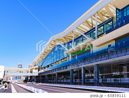 日本の横浜都市景観 桜木町駅前。横浜ランドマークタワーなどを望む。明日へ、希望の光