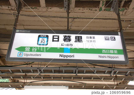 京浜東北線 日暮里駅(JK32)の駅名表示板(東京都荒川区)