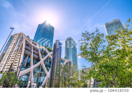 日本の東京都市景観 緑が映える新名所・麻布台ヒルズなどを望む。希望の光、新時代へ