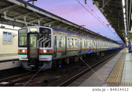 早朝の名古屋駅に停車する中央線の211系電車