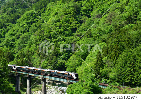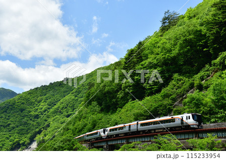 新緑の下原ダムを行く特急ひだ 高山本線 飛騨金山-焼石