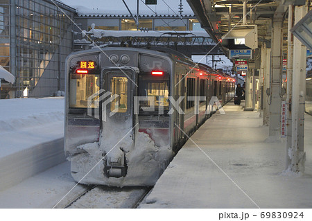冬の大曲駅に停車中の田沢湖線701系(盛岡⇔秋田)