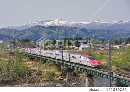 春の田沢湖線を走る秋田新幹線こまちE6系