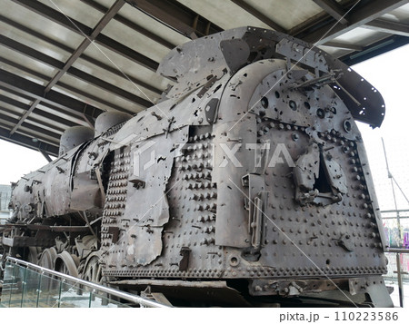 臨津閣平和ヌリ公園にある破壊された蒸気機関車