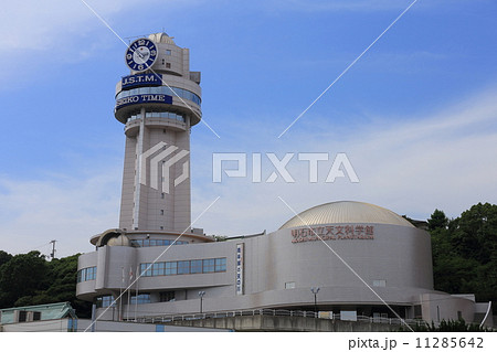 兵庫 明石 天文科学館と時計塔(南西方向から、晩春)