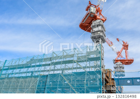 青空の建設現場とクレーン