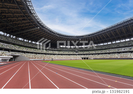 新国立競技場 国立競技場 風景 日本 東京 オリンピック スタジアム 快晴 青空 アップ 完成 竣工