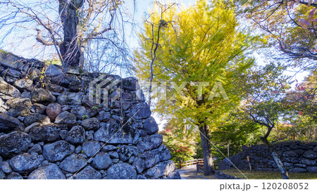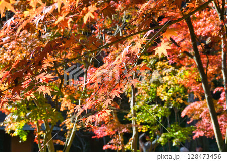 晩秋の秋晴れに映える鮮やかに色づいた紅葉