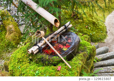 大原 宝泉院 宝楽園の美しい紅葉の手水鉢(京都府京都市左京区)