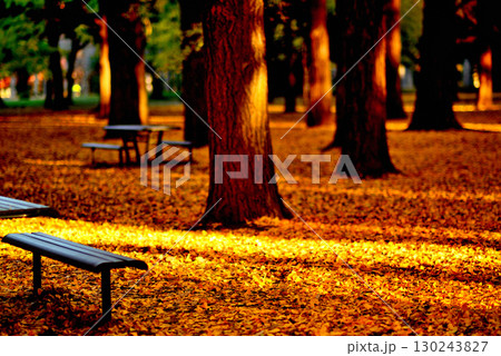 代々木公園の紅葉 晩秋の朝日に映える銀杏林