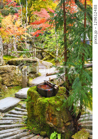 大原 宝泉院 宝楽園の美しい紅葉と手水鉢(京都府京都市左京区)