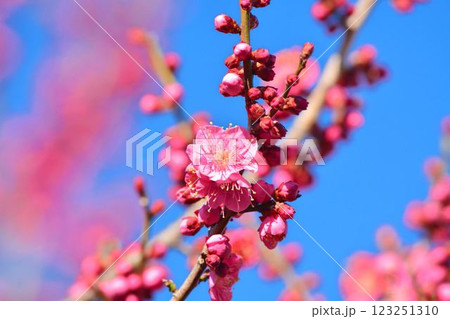 早春の訪れ 満開の枝垂れ紅梅 深谷市