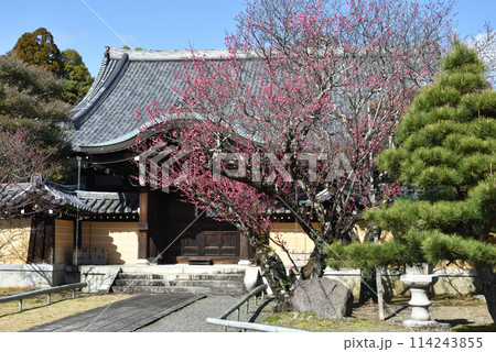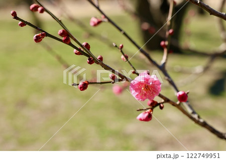 穏やかな春の日に咲く紅梅 早春イメージ