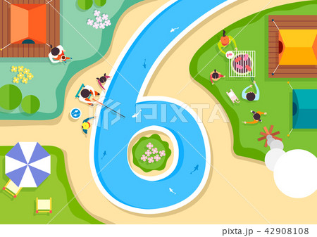 Vector - Top view of streets and beach side. in the shape of numbers flat style illustration. 006