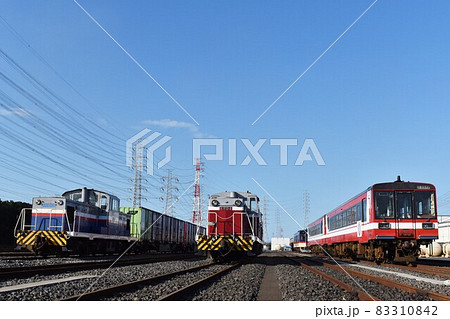 神栖で並ぶ鹿島臨海鉄道のディーゼル機関車と6000形