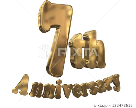 3DCG文字「7th Anniversary/7周年マークキラキラ」ゴールド,金