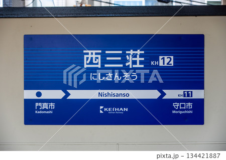 京阪電車の西三荘駅の駅名表示と駅番号