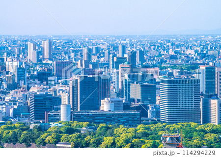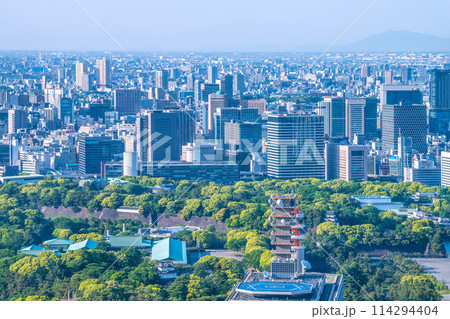 日本の東京都市景観 竹橋や一ツ橋エリア、毎日新聞社や丸紅ビル。奥には神田駿河台や西日暮里なども見える