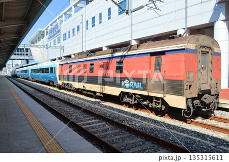 ディーゼル機関車が牽引する韓国鉄道公社KORAILの優等列車、ムグンファ号