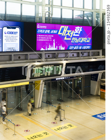 Platform of the Seoul station, high speed main railway station in Seoul, South Korea
