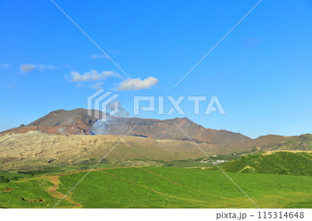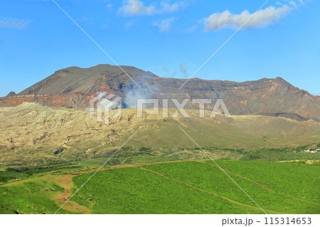 【熊本県】新緑の草千里ヶ浜と中岳(阿蘇山の火口)