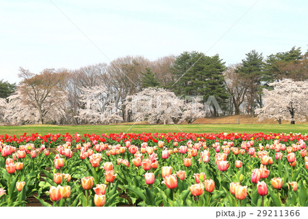 鳥見山公園の桜・チューリップ(福島県・鏡石町)