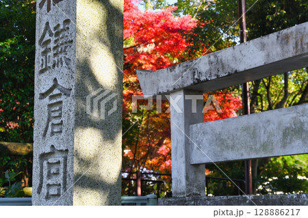 鎌倉宮の美しい鳥居と紅葉(神奈川県鎌倉市)