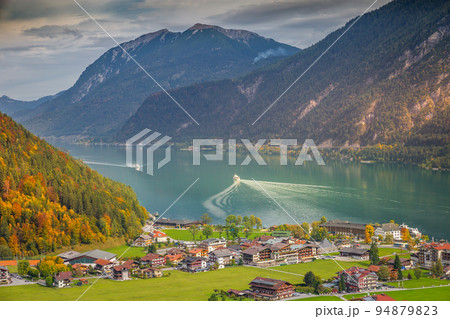 Sailboats in Achensee lake near Innsbruck at peaceful autumn, Tyrol , Austria