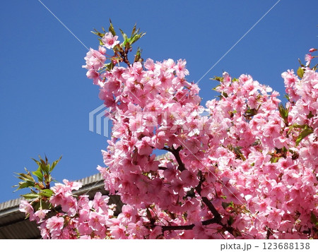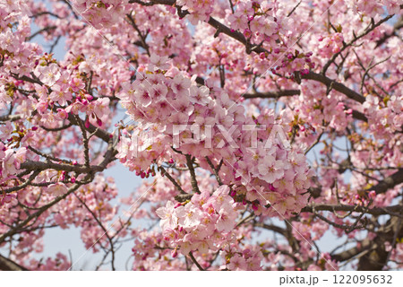 満開のカワヅザクラ(河津桜)の花が咲いています。