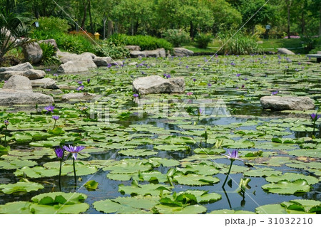 タイの自然、公園の庭園、睡蓮の池と花、ラマ9世公園