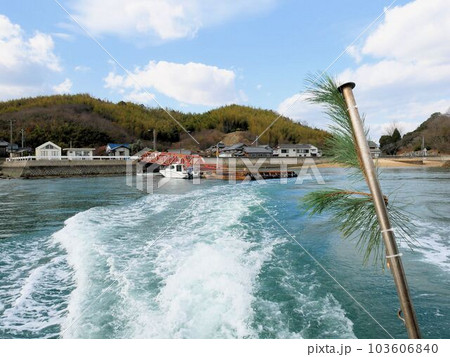 冬の小佐木島 港を出港する高速船 (広島県三原市)