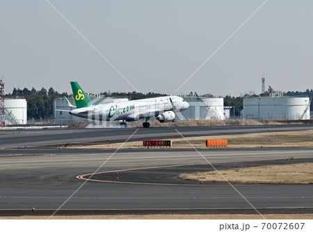 成田空港に着陸する旅客機 LCC 格安航空会社