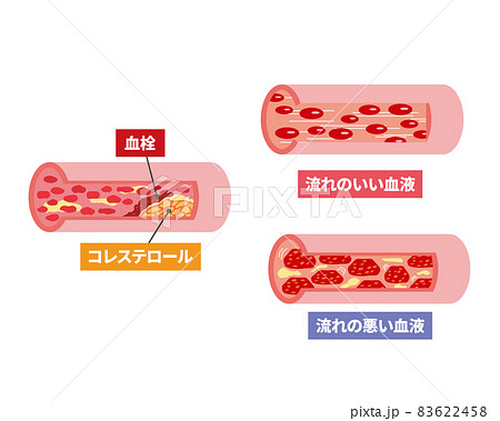 正常な状態の血管と、脂質異常症の血管 コレステロール