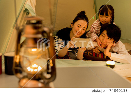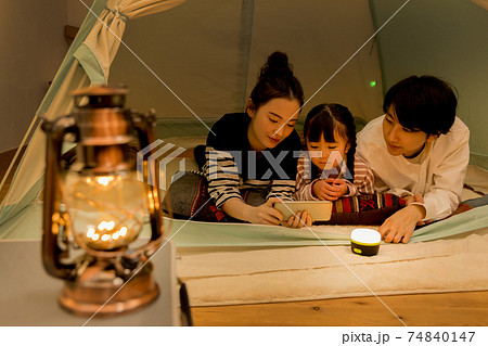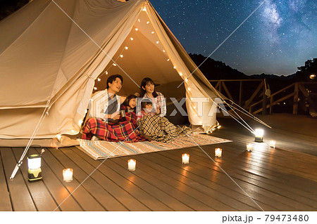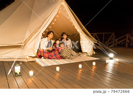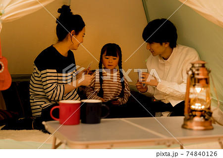 グランピングを楽しむ家族