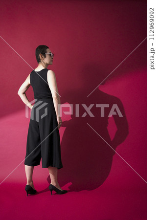 ジェンダーレス LGBT 男の子みたいな女の子 庭に立つ若い女性